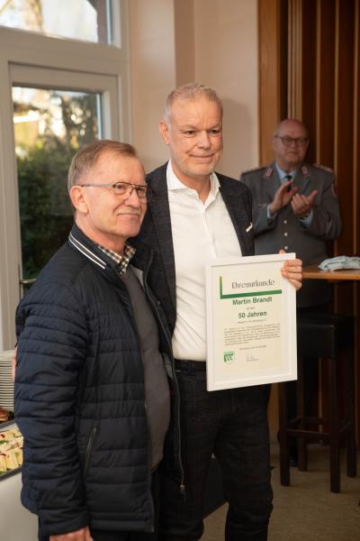 Der Ehrenpräsident Erich Koch übergab Martin mit viel lobenden Worte die besondere Ehrenurkunde für 50-jährige Mitgliedschaft und wünschte Martin viele weitere erfolgreiche Jahre im Dienst des VfL Bückeburg.